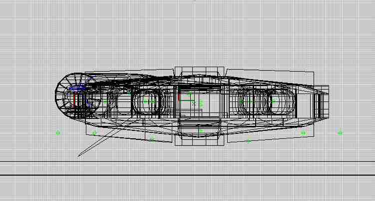 Front view in GTK Radiant, you can see the complexity of the patches on the left side of the ship, this is the weakest part of the ship hardly any textures line up.