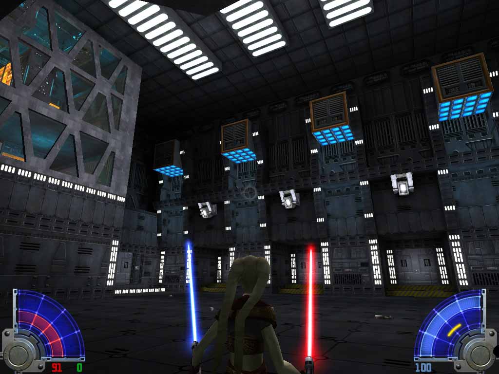 This level starts in a landing bay similar to the one seen in Return of the Jedi, and some other parts of the level resemble imperial architecture seen in the films, you may notice the blast doors, they took a bit of time to get right, including the frames.